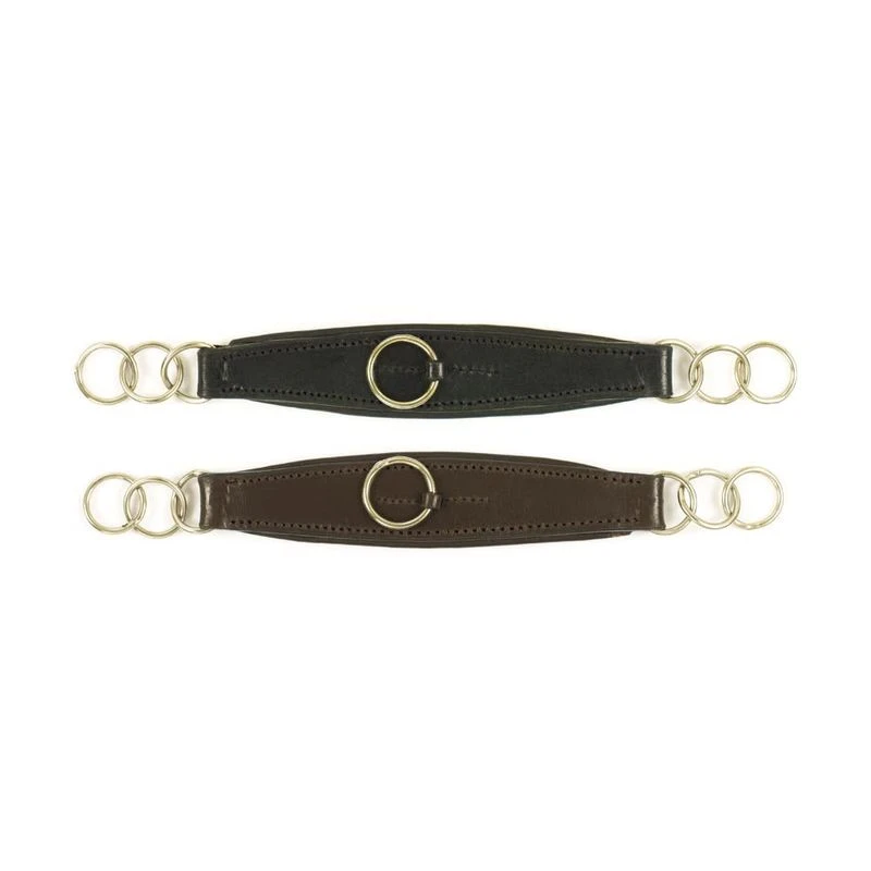 This imported padded leather curb strap features large link chain ends and center ring. The wider center offers a more comfortable pressure distribution. 8.5 inches long.