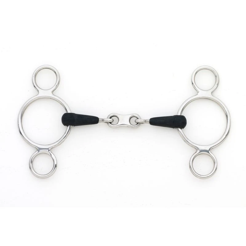 The French Link 2-Ring Gag by Centaur is a superb elevator bit designed with a rubber mouth.