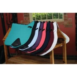 This innovative All Purpose pad is lined with a soft polyester material with CERAMIC-tech thread that reflects body heat to keep muscles warm. The spine is made of 3D air mesh for increased air flow. With a high profile wither and contour back, this pad fits perfectly. The unique bar quilted and bold trim finish off this lovely pad.