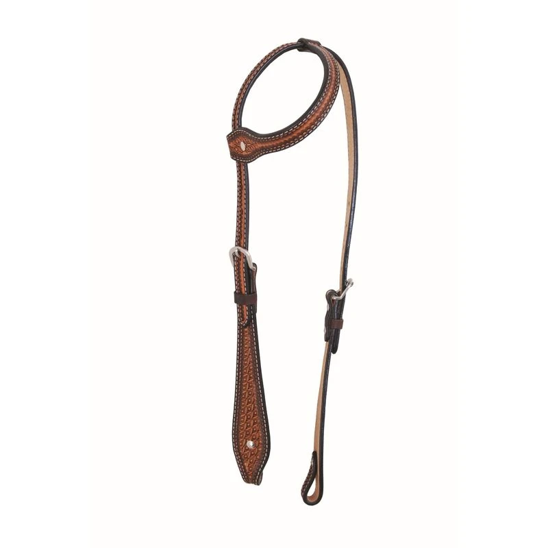 Western Rawhide Jim Taylor Performance Diamond Tear Drop One Ear Headstall – Two Tone Brown